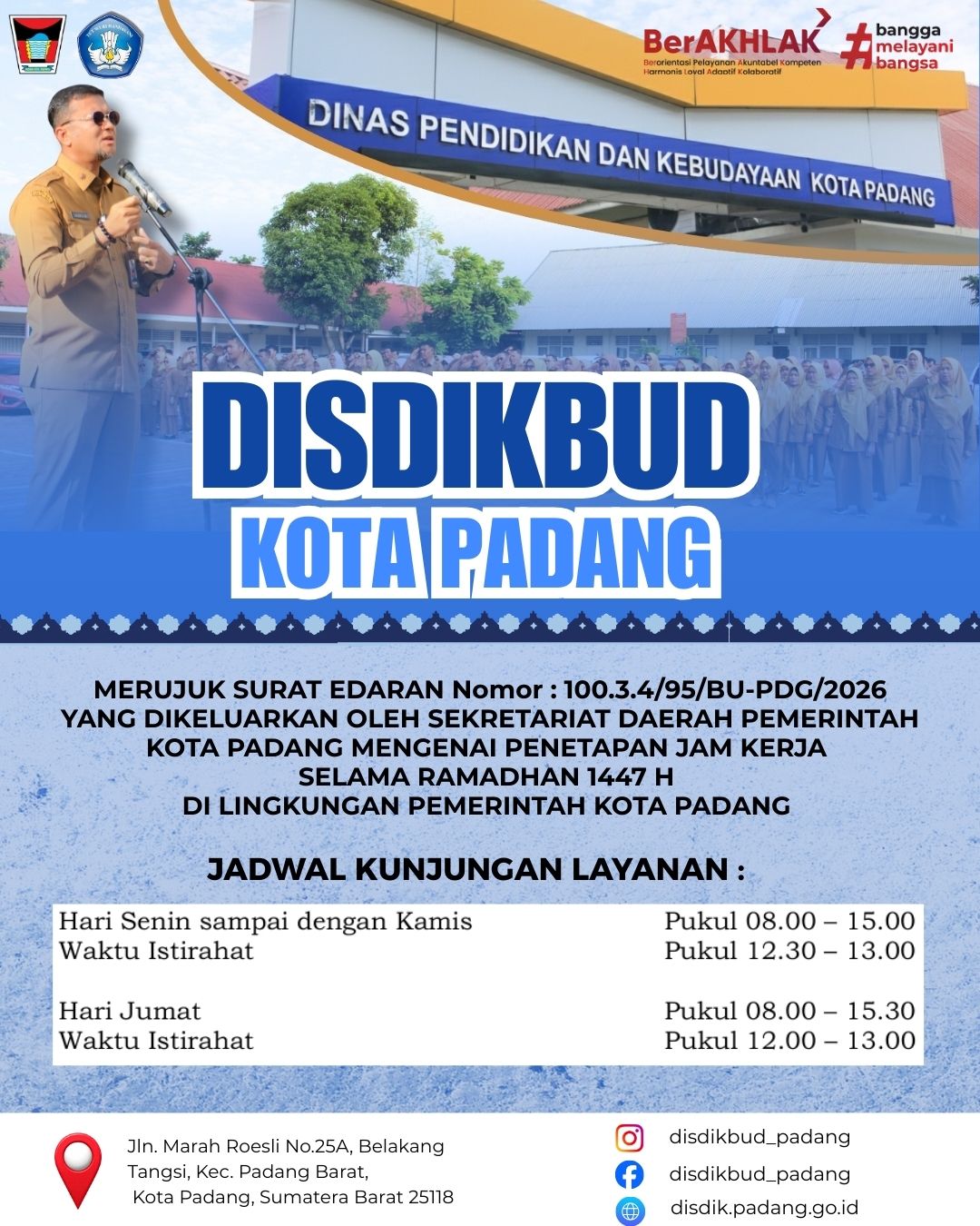 Surat Edaran Nomor: 100.3.4/95/BU-PDG/2026 Tentang Penetapan Jam Kerja pada Bulan Ramadhan 1447 Hijriah Bagi Aparatur Sipil Negara di Lingkungan Pemerintah Kota Padang
